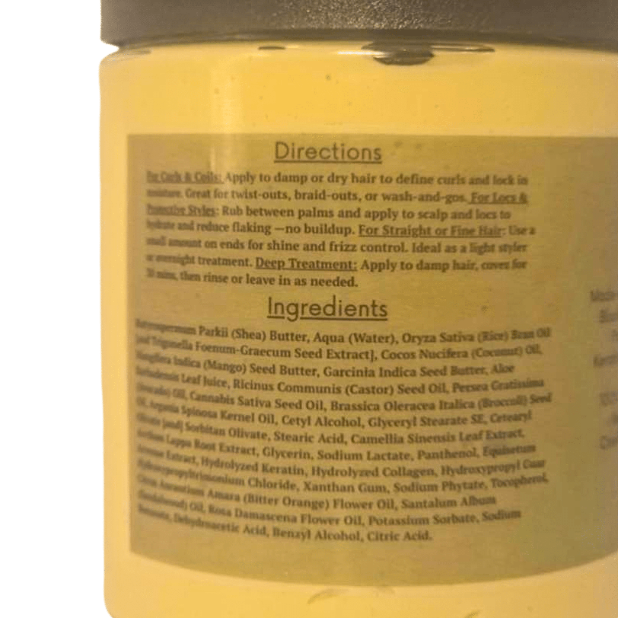 The experience begins with a sumptuous blend of shea, mango, and kokum butters, each melting instantly to deliver deep emollient moisture. Coconut, castor, avocado, and argan oils flood the hair fiber with essential fatty acids, smoothing the cuticle and sealing hydration inside every strand.