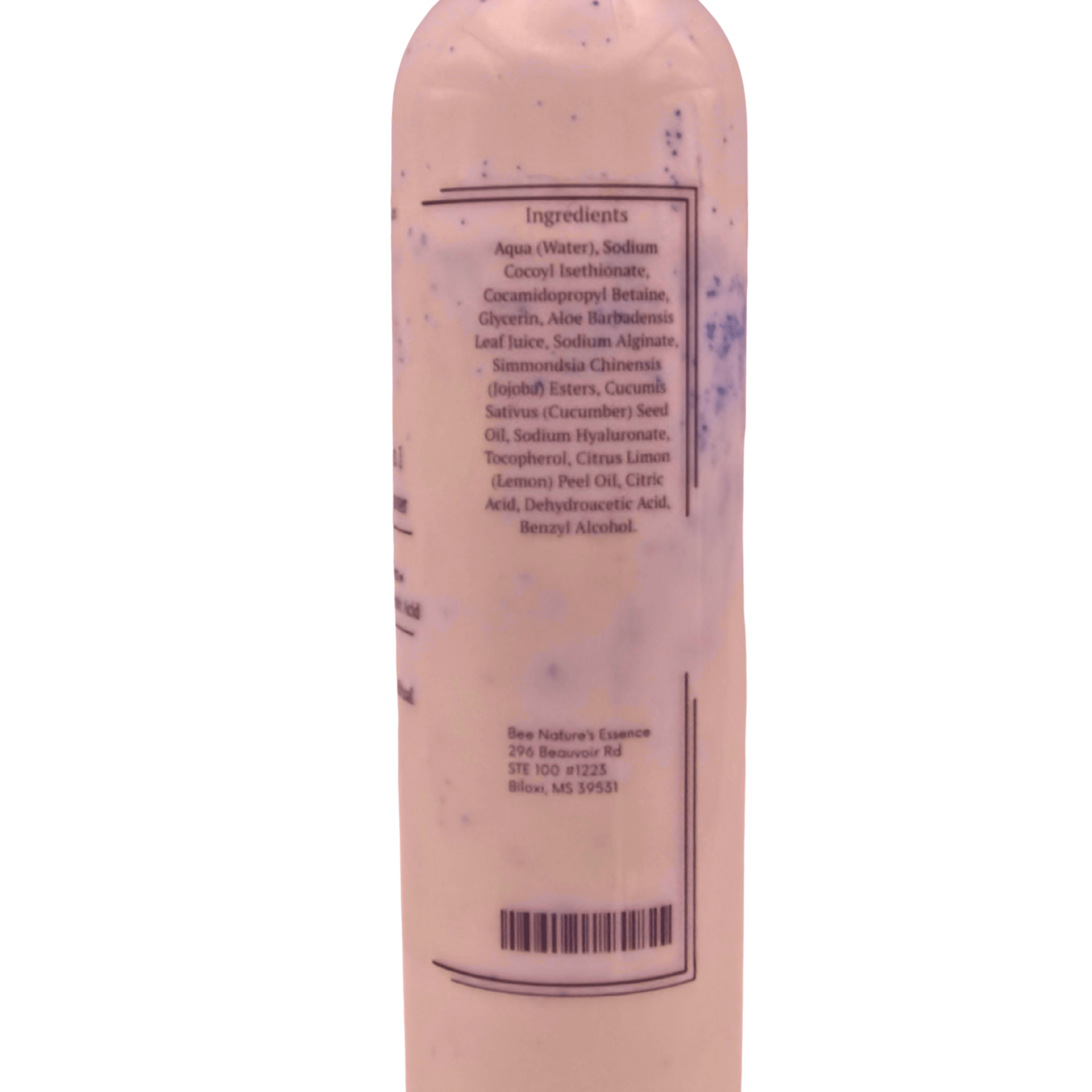 Aqua (Water), Sodium Cocoyl Isethionate, Cocamidopropyl Betaine, Glycerin, Aloe Barbadensis Leaf Juice, Sodium Alginate, Simmondsia Chinensis (Jojoba) Esters, Cucumis Sativus (Cucumber) Seed Oil, Sodium Hyaluronate, Tocopherol, Citrus Limon (Lemon) Peel Oil, Citric Acid, Dehydroacetic Acid, Benzyl Alcohol.