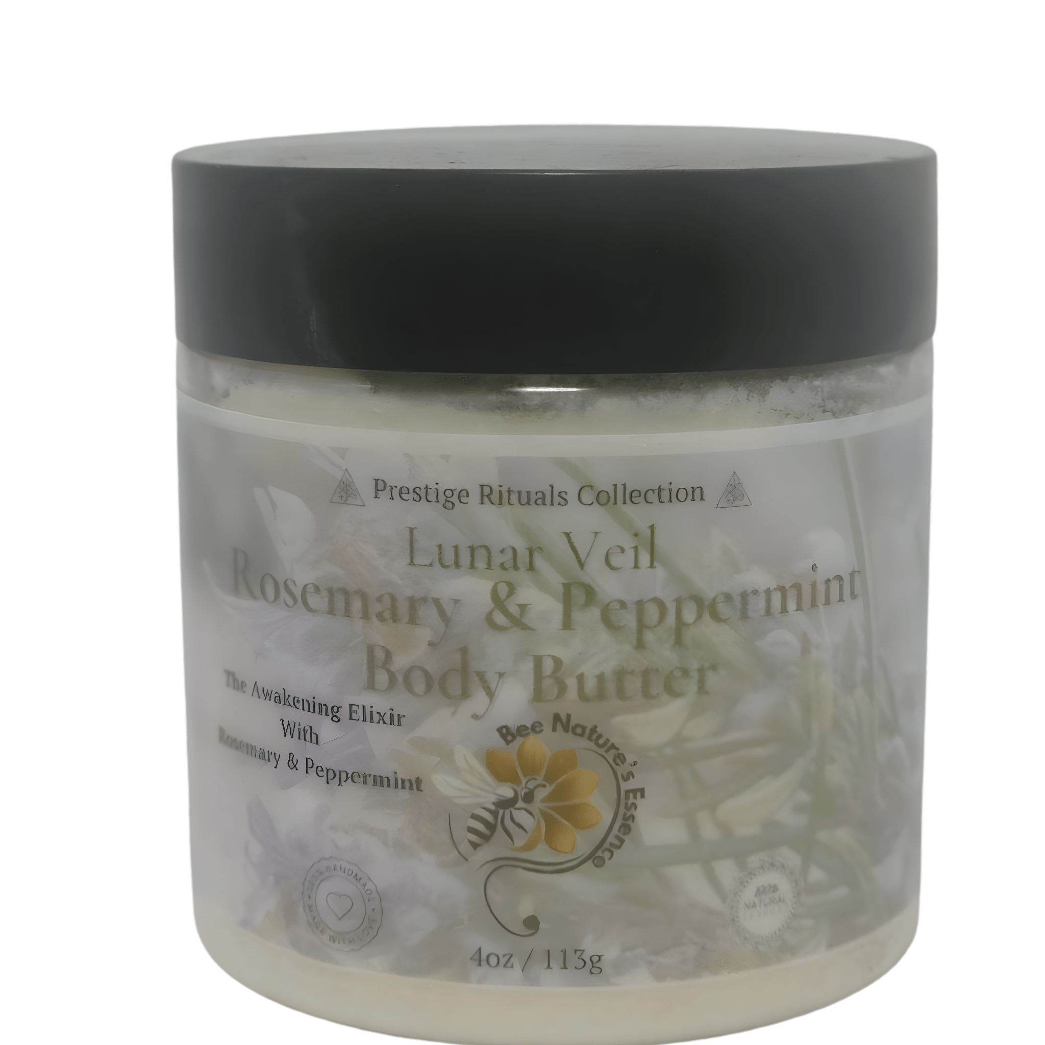 Lunar Veil — The Awakening Elixir revitalizes the complexion with the crisp energy of Rosemary and Peppermint, reawakening the skin’s natural luminosity. This luxury botanical balm blends Marine Collagen, Niacinamide, and Hyaluronic Acid 4D to hydrate, firm, and refine the skin’s texture, while Shea and Jojoba oils replenish moisture for a smooth, polished finish.