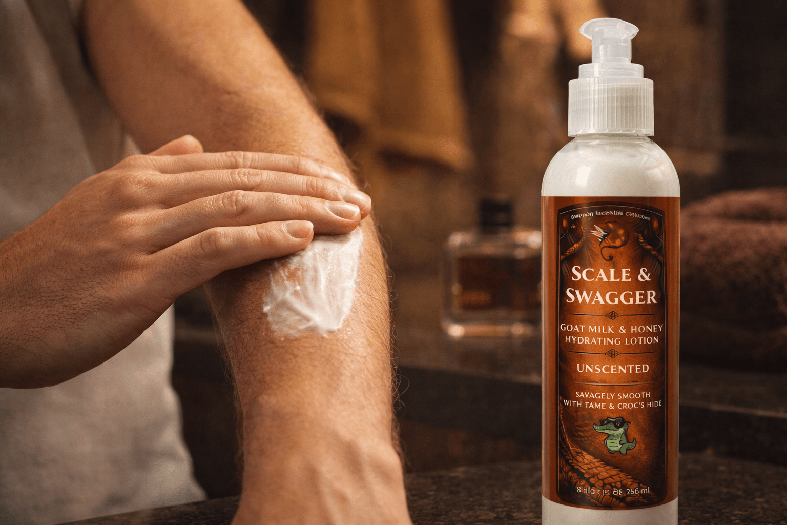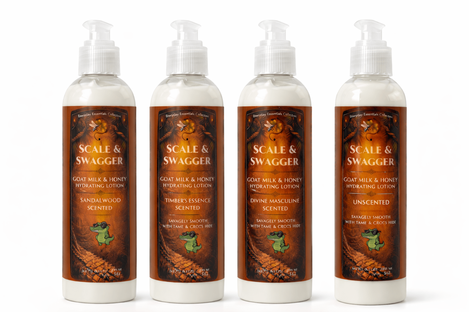 Born from the same sacred alchemy that shaped warriors, scholars, and kings, Scale & Swagger is more than a lotion — it’s an armor of elegance, a ritual of power and poise. Crafted from nature’s most intelligent elements, it restores the skin’s strength while cloaking it in effortless sophistication. Scale & Swagger Goat Milk & Honey Hydrating Lotion is built for skin that takes a beating—sun, sweat, work, salt air, cold wind, hot showers—whatever. This is the daily armor that leaves you savagely smooth, with a clean finish that absorbs fast and doesn’t feel greasy.